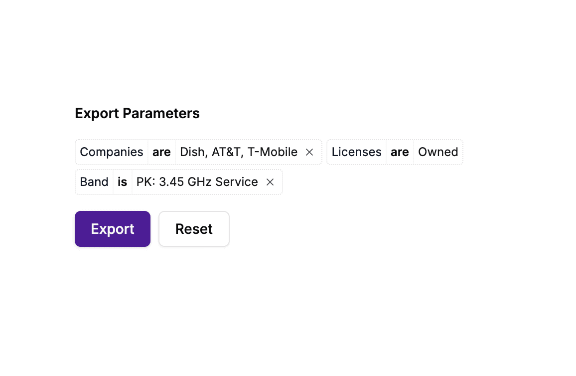 Aggregate spectrum holdings with advanced filters to compare spectrum holdings across multiple dimensions. Get weighted MHz and MHz-Pop's broken down by band and market.
