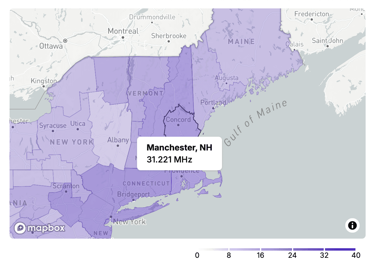 View the spectrum holder for each county and block across the US and Territories. The file is updated daily and includes low, mid, and high band spectrum.